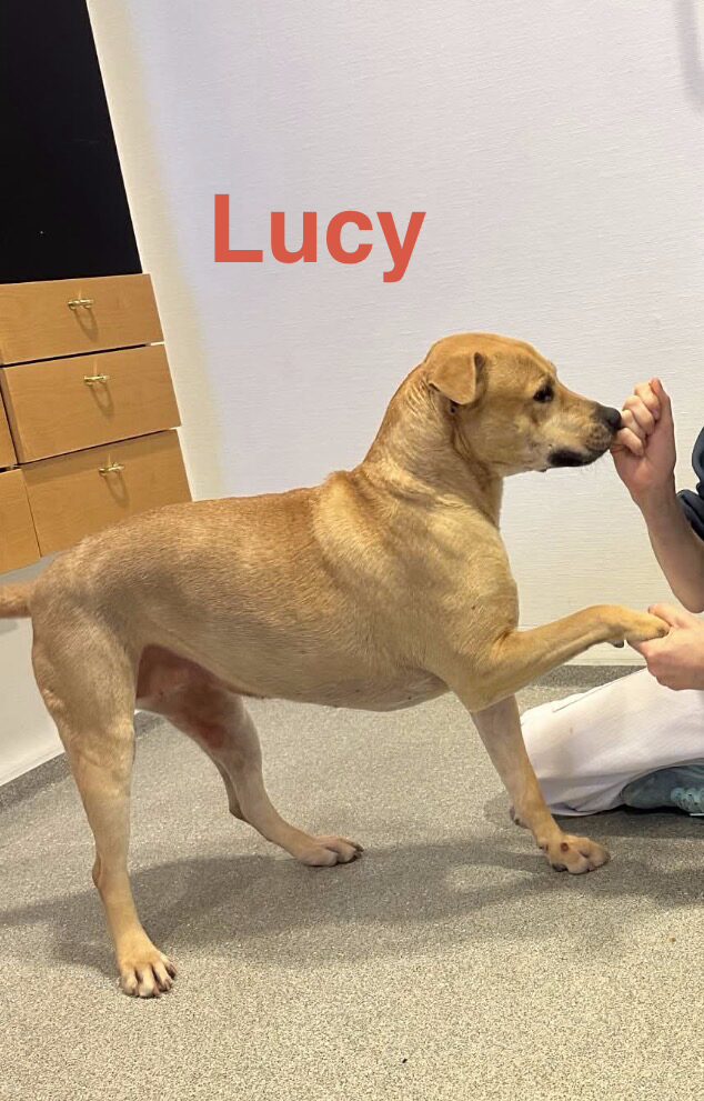 Lucy stod imidlertid afslappet og tillidsfuld gennem hele forløbet uden udfald, knurren, spændingsreaktion eller undvigende aggression.